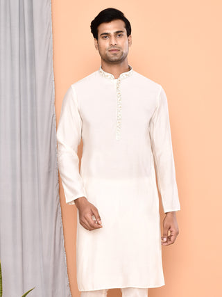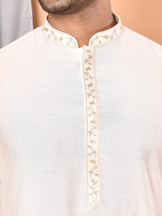 Men'n Cream Thread Worked Cotton Kurta