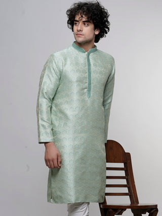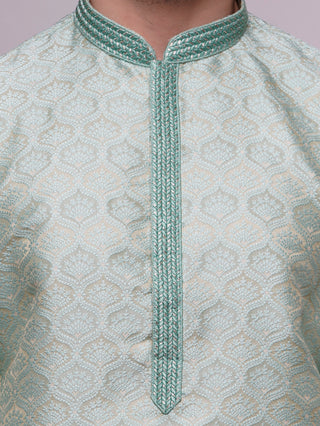 Maahi Fabs Men's Sequin Embroidered Green Kurta Set