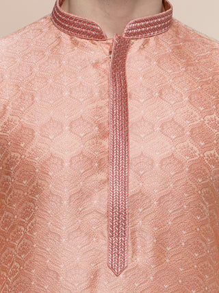 Maahi Fabs Men's Printed Peach Kurta