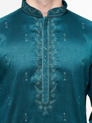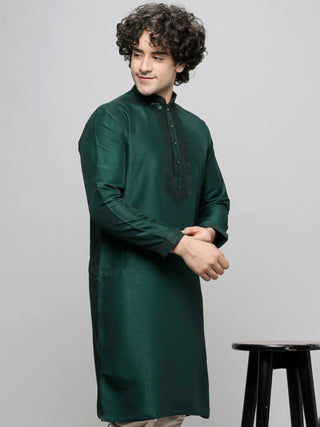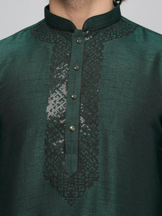 Men's Bottlegreen Sequin Embroidered Kurta