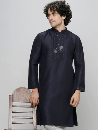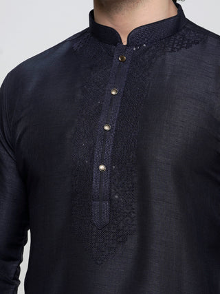 Men's Navy Blue Sequin Embroidered Kurta